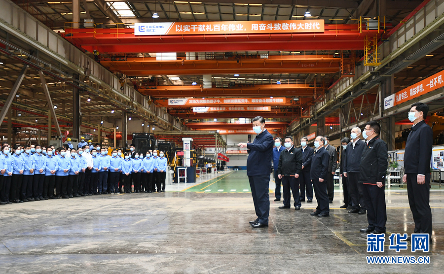 當天下午,習近平來到柳州市考察調(diào)研。在廣西柳工集團有限公司,習近平先后走進公司展廳、研發(fā)實驗中心、挖掘機裝配廠等,聽取企業(yè)發(fā)展情況介紹,察看主要產(chǎn)品展示,同企業(yè)職工和技術(shù)研發(fā)人員親切交談。習近平強調(diào),制造業(yè)高質(zhì)量發(fā)展是我國經(jīng)濟高質(zhì)量發(fā)展的重中之重,建設社會主義現(xiàn)代化強國、發(fā)展壯大實體經(jīng)濟,都離不開制造業(yè),要在推動產(chǎn)業(yè)優(yōu)化升級上繼續(xù)下功夫。只有創(chuàng)新才能自強、才能爭先,要堅定不移走自主創(chuàng)新道路,把創(chuàng)新發(fā)展主動權(quán)牢牢掌握在自己手中。要堅持黨對國有企業(yè)的全面領(lǐng)導,堅持加強黨的領(lǐng)導和完善公司治理相統(tǒng)一,在深化企業(yè)改革中搞好黨的建設,充分發(fā)揮黨組織在企業(yè)改革發(fā)展中的領(lǐng)導核心作用。