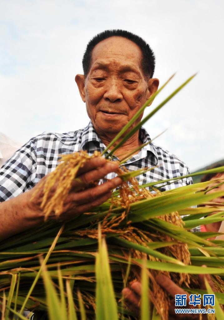 2013年8月19日,袁隆平院士在廣西桂林市灌陽縣黃關鎮(zhèn)聯德村袁隆平超級稻第四期攻關示范片查看水稻生長情況。新華社記者 陸波岸 攝