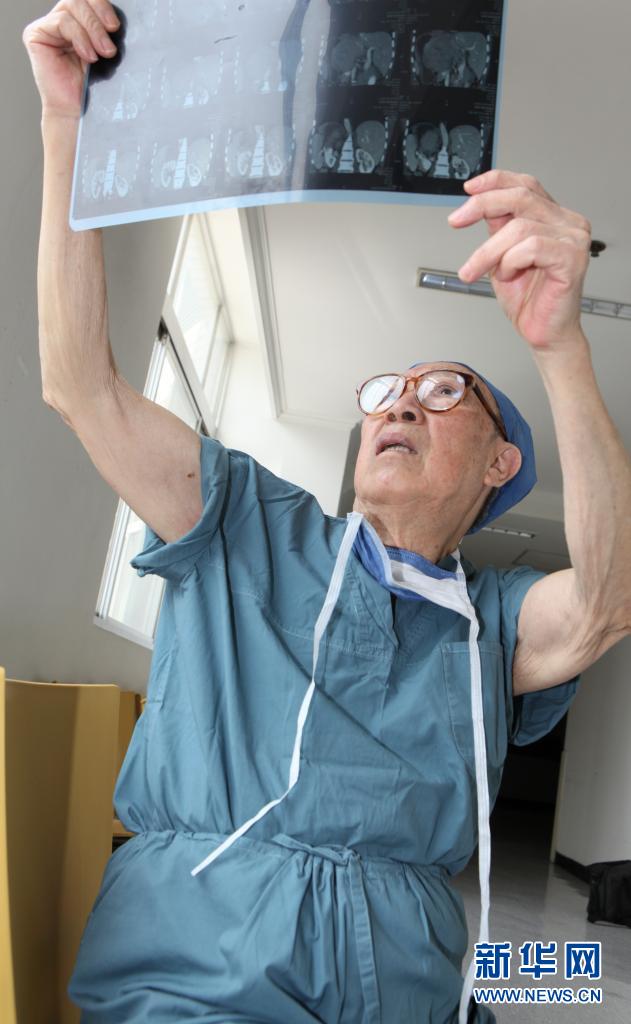 年近90的吳孟超院士在手術后分析患者的核磁共振結果(2011年4月13日攝)。新華社發(fā)(張鵬 攝)