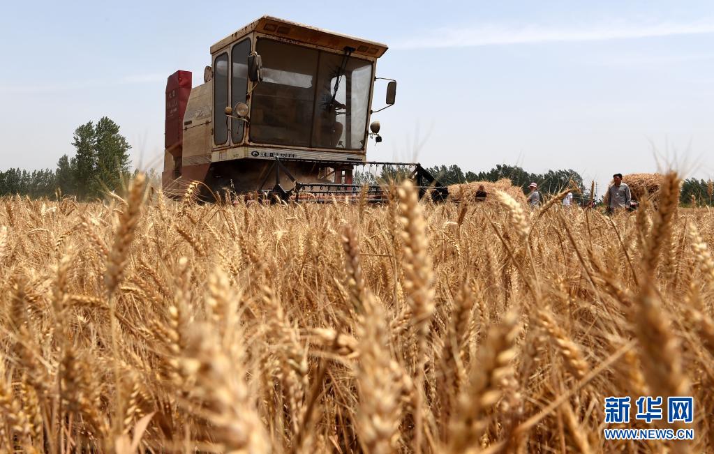 2021 6 5 日,在河南省周口市黃泛區(qū)農(nóng)場二分場的麥田里,農(nóng)機(jī)手操作收割機(jī)收獲小麥。 新華社記者 李安 攝
