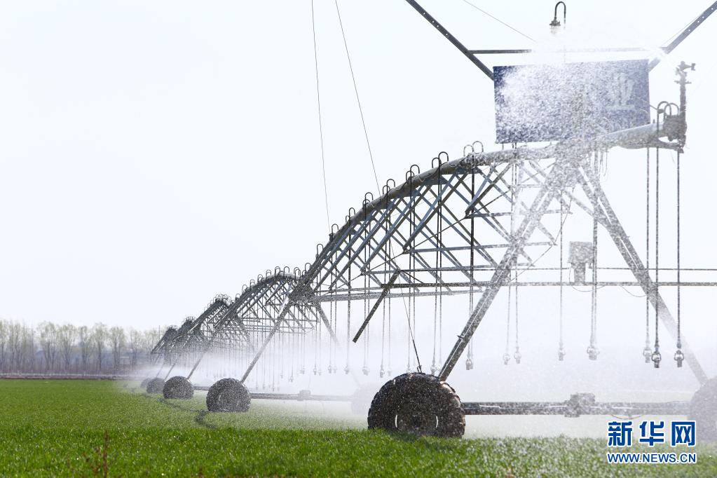 2021 2 23 日,在河南省鶴壁市??h一片高標(biāo)準(zhǔn)農(nóng)田里,自走式噴灌機(jī)在為小麥澆水。 新華社記者 許雅楠 攝