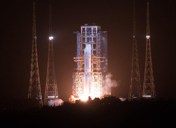 這是長征五號遙五運載火箭發(fā)射。新華社記者金立旺攝