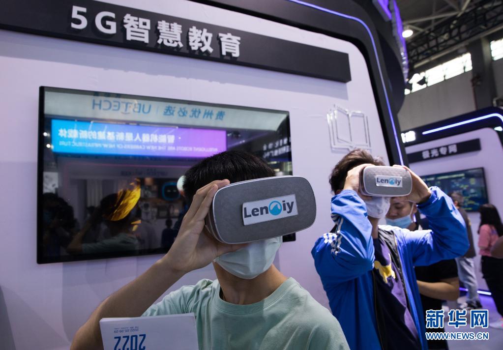 5月27日,在2021中國國際大數據產業(yè)博覽會展館,觀眾在體驗5G智慧教育項目。新華社記者 金立旺 攝