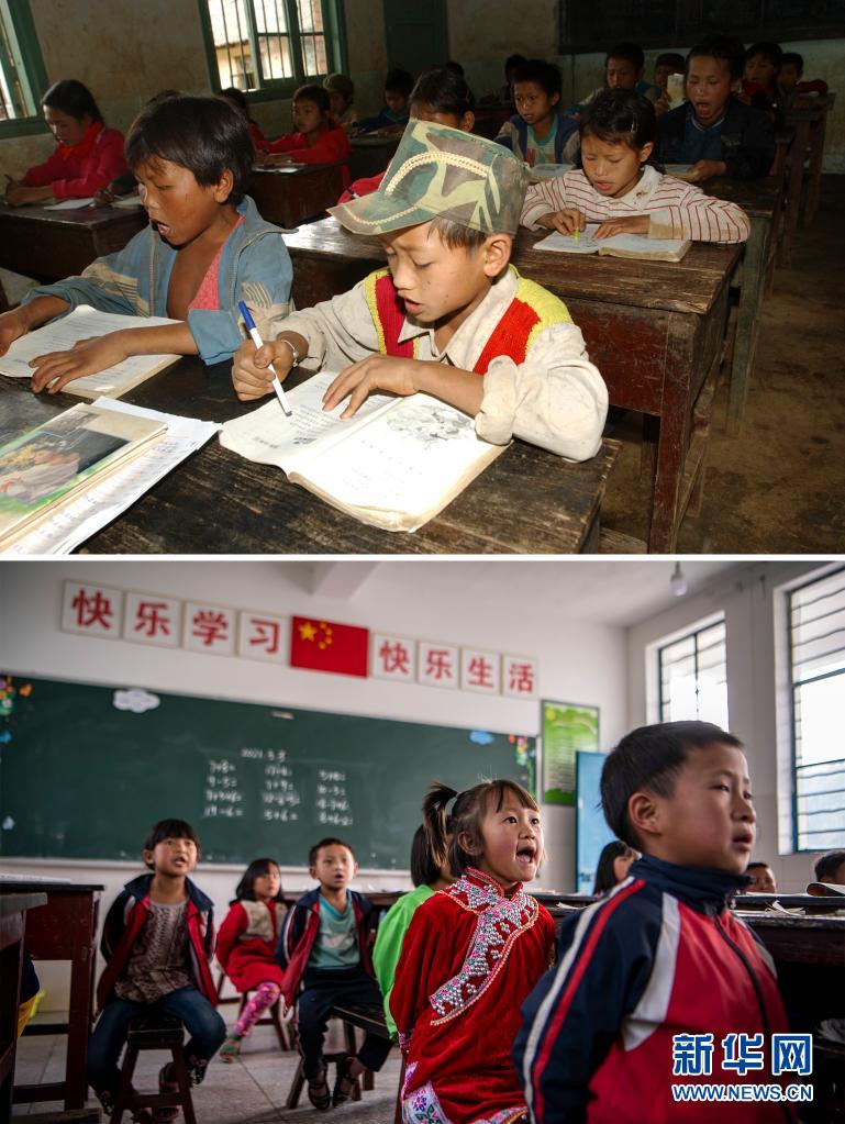 云南省瀾滄拉祜族自治縣木戛鄉(xiāng)哈卜嗎村小學,多年前,教室用木樁做墻、糊上泥巴擋風。如今,教室寬敞明亮,上課用電子白板等多媒體教學設備,圖書室有3500冊各類圖書。