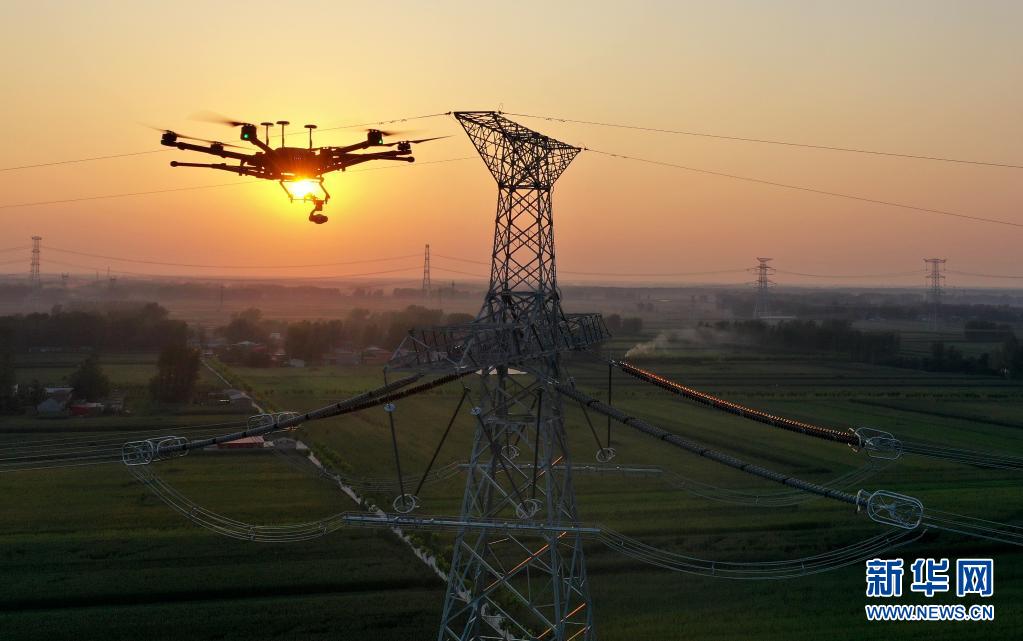 基于5G網絡傳輸條件下的無人機在青海—河南±800千伏特高壓直流輸電工程豫南換流變電站外巡檢(2020年8月27日拍攝,無人機照片)。新華社記者 李嘉南 攝