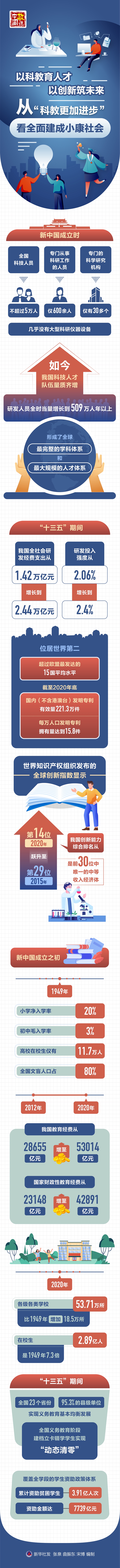 從“一窮二白”到成為世界上具有重要影響力的科技大國,從文盲率80%到教育水平躍居世界中上行列。
