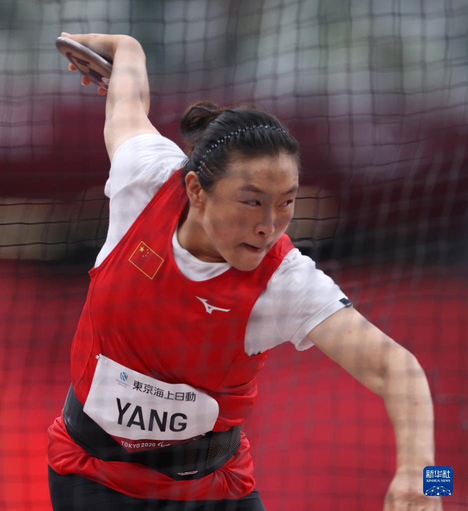 8月29日,中國選手楊月在東京殘奧會(huì)田徑女子鐵餅F64級(jí)決賽中。新華社記者 杜瀟逸 攝