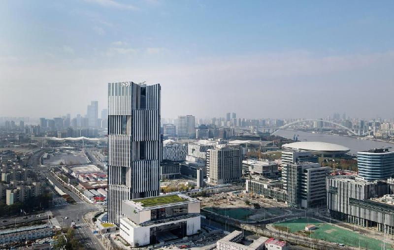 2020年12月17日,新開(kāi)發(fā)銀行總部大樓竣工儀式在上海舉行。這是12月17日在上海世博園區(qū)拍攝的新開(kāi)發(fā)銀行總部大樓(無(wú)人機(jī)照片)。新華社記者 方喆 攝