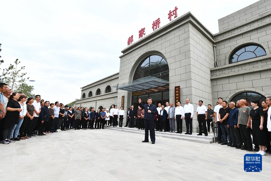 位于綏德縣城西南的張家砭鎮(zhèn)郝家橋村,是綏德地委在抗戰(zhàn)時期經(jīng)過調(diào)查研究發(fā)現(xiàn)的一個模范村,通過開展“村村學(xué)習(xí)郝家橋,人人學(xué)習(xí)劉玉厚”活動,掀起了大生產(chǎn)熱潮。黨的十八大以來,郝家橋村積極發(fā)展特色產(chǎn)業(yè),村容村貌和村民生活發(fā)生了深刻變化,榮獲“全國脫貧攻堅楷?!睒s譽稱號。14日下午,習(xí)近平來到這里,詳細(xì)觀看村史展覽,了解這個“紅色山村”的光榮革命歷史以及革命傳統(tǒng)傳承情況。隨后,習(xí)近平來到村民侯志榮家中看望。侯志榮一家曾經(jīng)因病致貧,靠著各級幫扶和自身努力2016年擺脫貧困。習(xí)近平強(qiáng)調(diào),看到你們一家人日子越過越好、人丁興旺,我感到很欣慰。讓鄉(xiāng)親們過好光景,是我們黨始終不渝的初心使命,共產(chǎn)黨就要把這件事情干好,不斷交上好答卷。全黨全國全社會都要大力弘揚脫貧攻堅精神,奮發(fā)圖強(qiáng)、自力更生,不斷奪取全面建設(shè)社會主義現(xiàn)代化國家新的更大勝利。