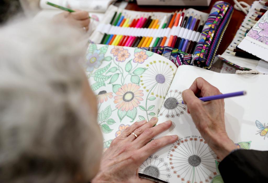 2020年11月,在上海市靜安區(qū)江寧路街道愛(ài)老家園,一位老年人在通過(guò)圖畫(huà)填色進(jìn)行康復(fù)訓(xùn)練(新華社記者劉穎 攝)