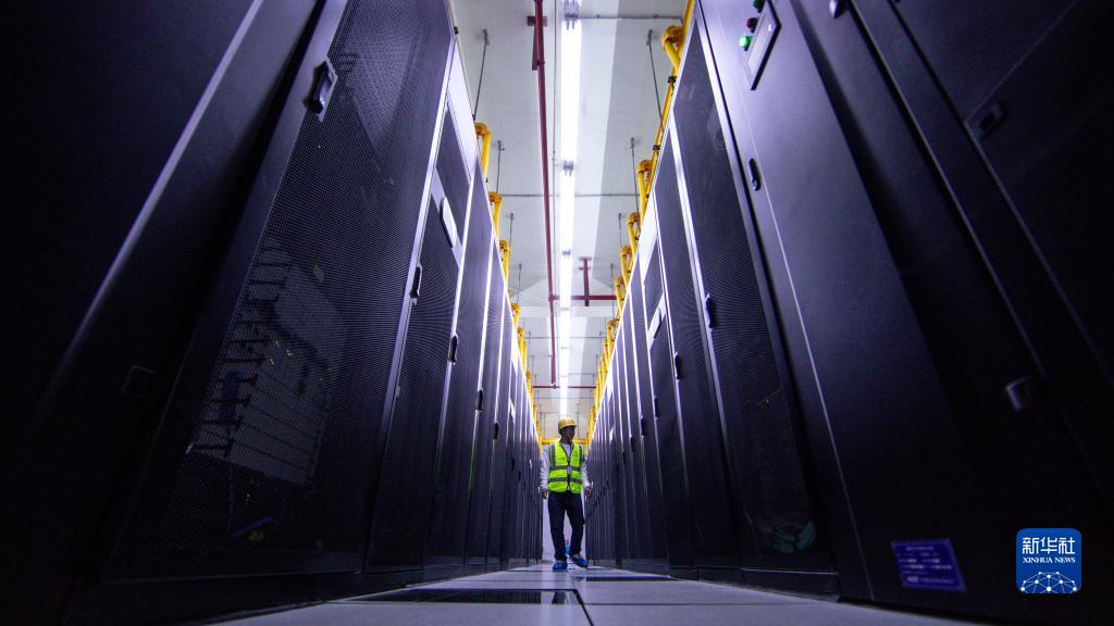 工作人員在中國(guó)移動(dòng)貴州數(shù)據(jù)中心機(jī)房?jī)?nèi)巡檢(5月24日攝)。新華社記者 歐東衢 攝