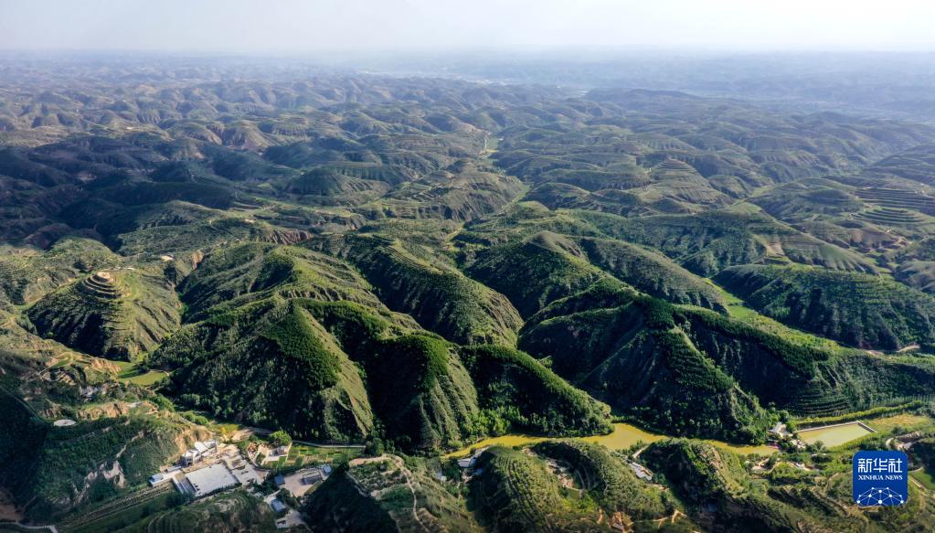 黃土溝壑中的陜西榆林市米脂縣銀州街道高西溝村滿眼綠色(9月10日攝,無(wú)人機(jī)照片)。新華社記者 陶明 攝
