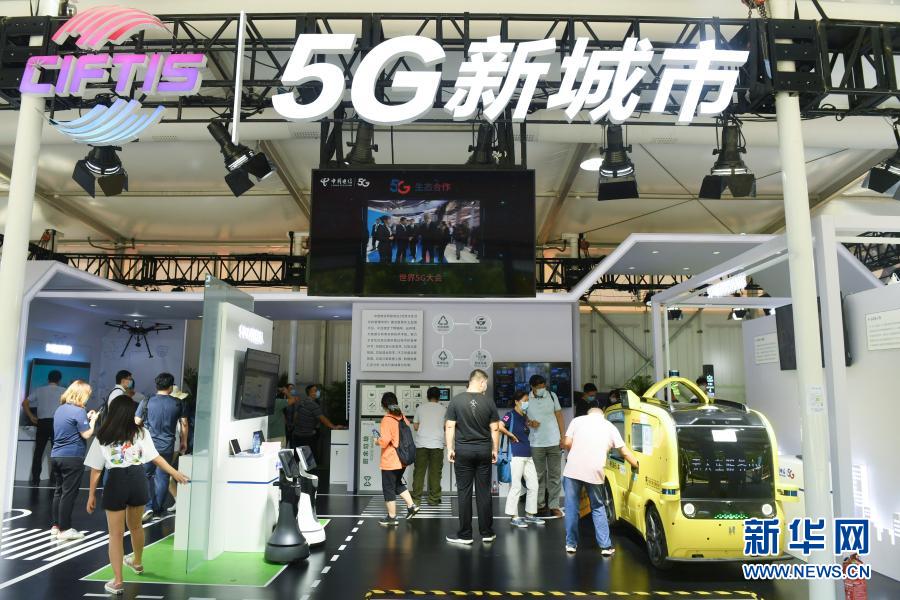 9 月 7 日,觀眾在 2020 年中國(guó)國(guó)際服務(wù)貿(mào)易交易會(huì) 5G 通信服務(wù)專題展區(qū)參觀。 2020 年中國(guó)國(guó)際服務(wù)貿(mào)易交易會(huì) 9 月 4 日至 9 日在北京舉行。新華社記者 魯鵬 攝