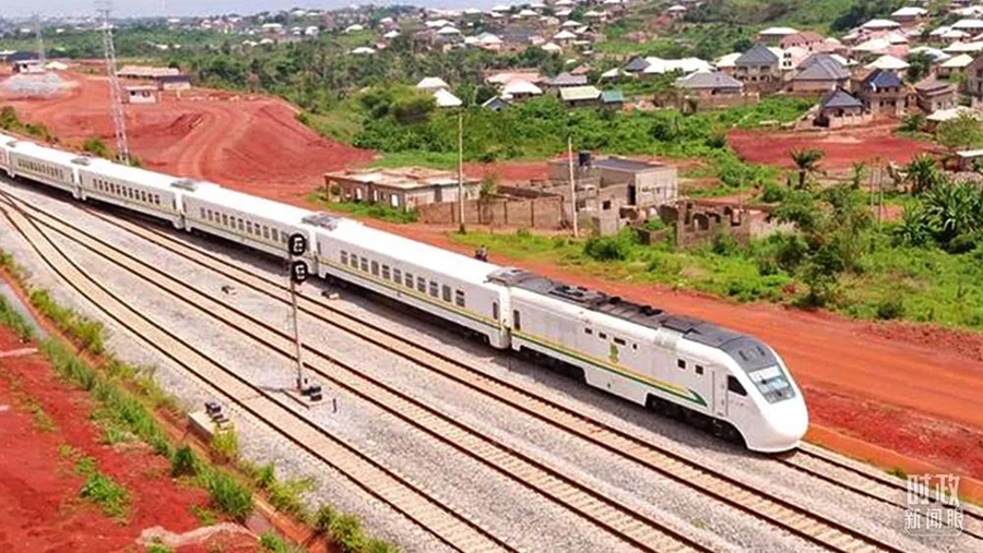 △2021年6月,由中企承建的尼日利亞拉伊鐵路正式通車(chē)運(yùn)營(yíng)。這是列車(chē)穿過(guò)當(dāng)?shù)鼐用裆鐓^(qū)。(資料圖)