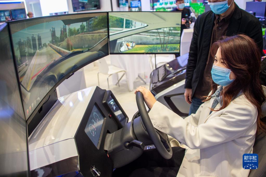 11月19日至21日,2021中國5G+工業(yè)互聯(lián)網(wǎng)大會(huì)在位于武漢的中國光谷科技會(huì)展中心舉行。這是 11月19日,參觀者在“5G+工業(yè)互聯(lián)網(wǎng)成果展”上體驗(yàn)駕駛智能模擬器。新華社發(fā)(伍志尊 攝)