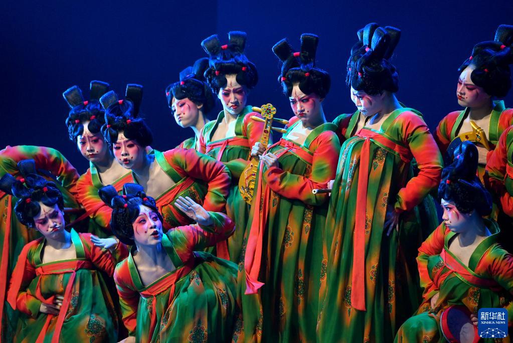 演員在第十二屆中國(guó)舞蹈“荷花獎(jiǎng)”古典舞終評(píng)演出上表演《唐宮夜宴》(2020年10月16日攝)。新華社記者 李嘉南 攝