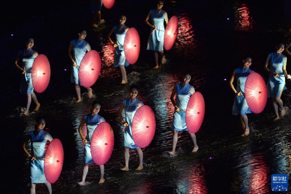 演員在西湖景區(qū)進(jìn)行的G20杭州峰會(huì)文藝演出《最憶是杭州》中表演《難忘茉莉花》(2016年9月4日攝)。新華社記者 黃宗治 攝