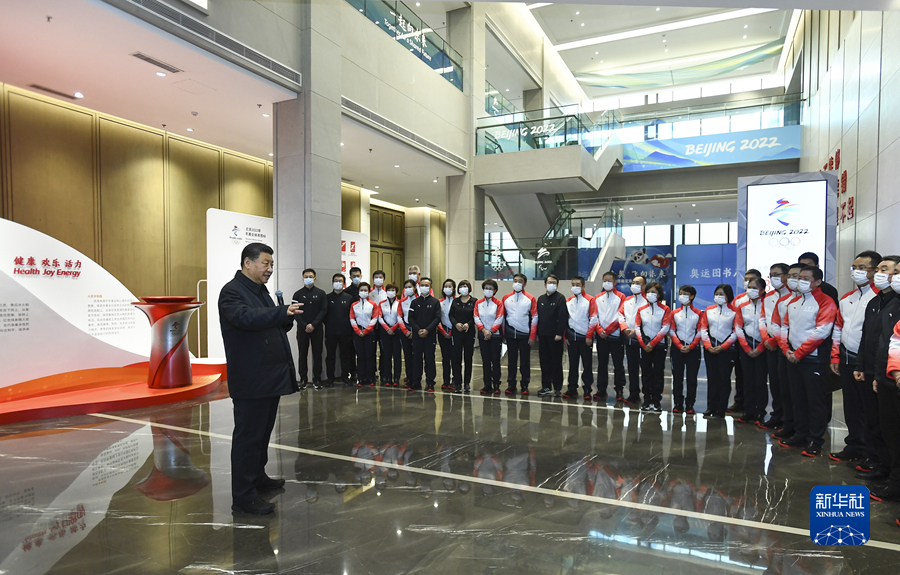 1月4日,中共中央總書(shū)記、國(guó)家主席、中央軍委主席習(xí)近平在北京考察2022年冬奧會(huì)、冬殘奧會(huì)籌辦備賽工作。這是4日下午,習(xí)近平在二七廠冰雪項(xiàng)目訓(xùn)練基地速滑館,向參訓(xùn)運(yùn)動(dòng)員、教練員表示慰問(wèn)。新華社記者 謝環(huán)馳 攝