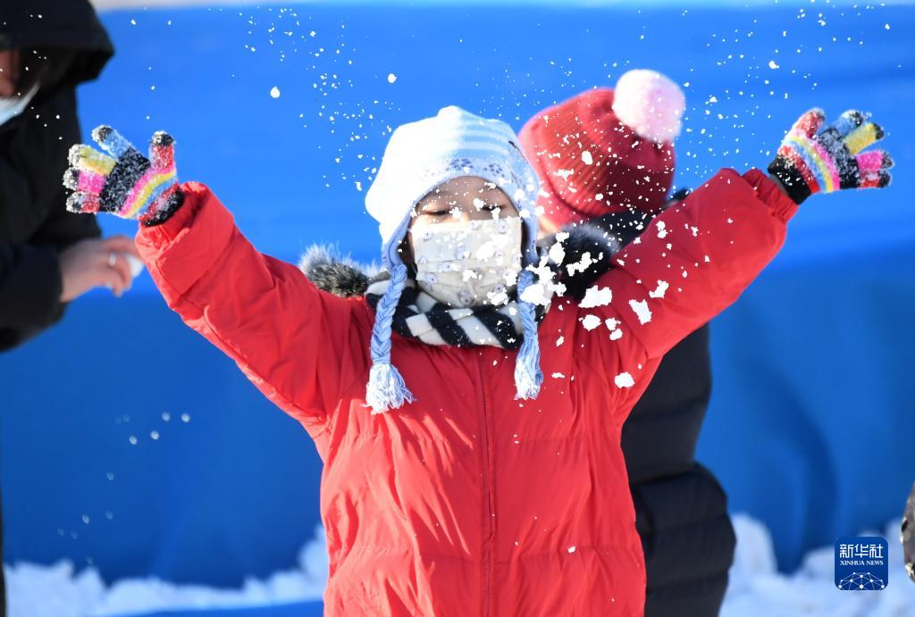 小朋友在北京國際鮮花港冰雪嘉年華游玩(1月8日攝)。新華社記者 任超 攝