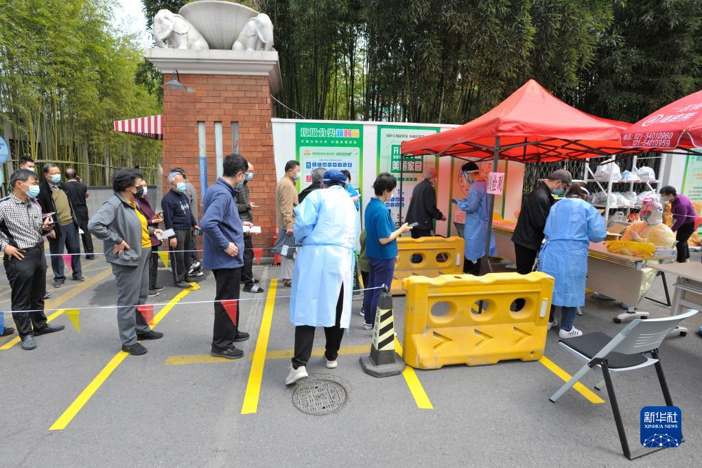 3月13日,上海市明園小安橋小區(qū)的居民排隊等待接受核酸檢測。新華社記者 高峰 攝