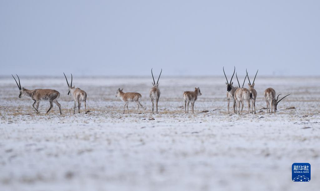 2021年4月20日,藏羚羊在三江源可可西里地區(qū)活動。新華社記者 吳剛 攝