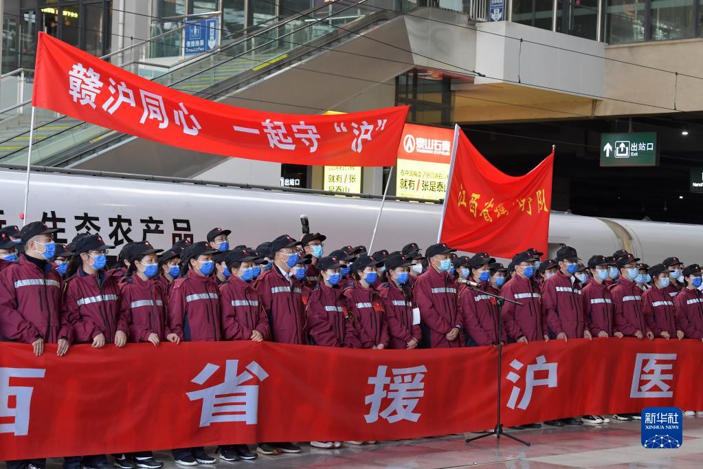 4月3日,江西省援滬醫(yī)療隊(duì)從南昌出發(fā),馳援上??箵粢咔?。新華社記者 彭昭之 攝