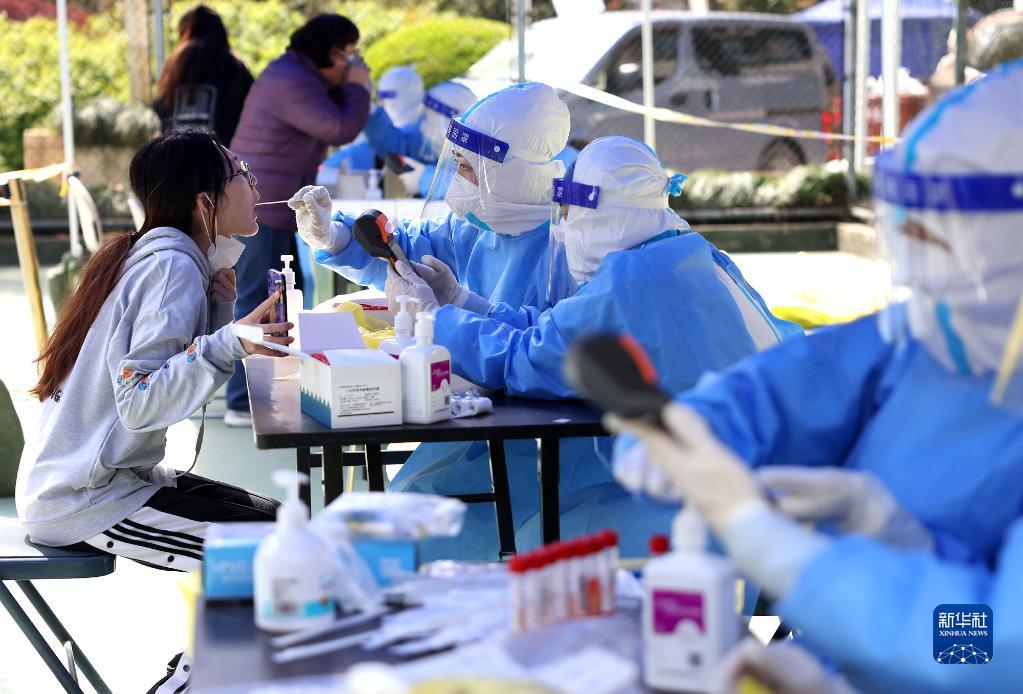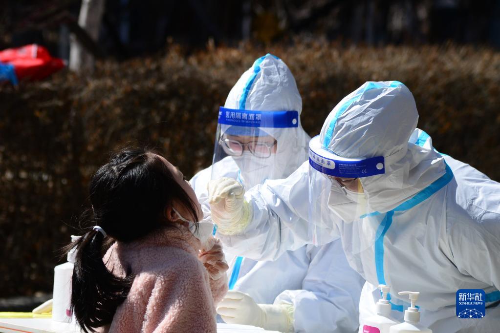 4月7日,在長(zhǎng)春市南關(guān)區(qū)一處核酸檢測(cè)點(diǎn),醫(yī)務(wù)人員為居民進(jìn)行核酸采樣。新華社記者 張建 攝