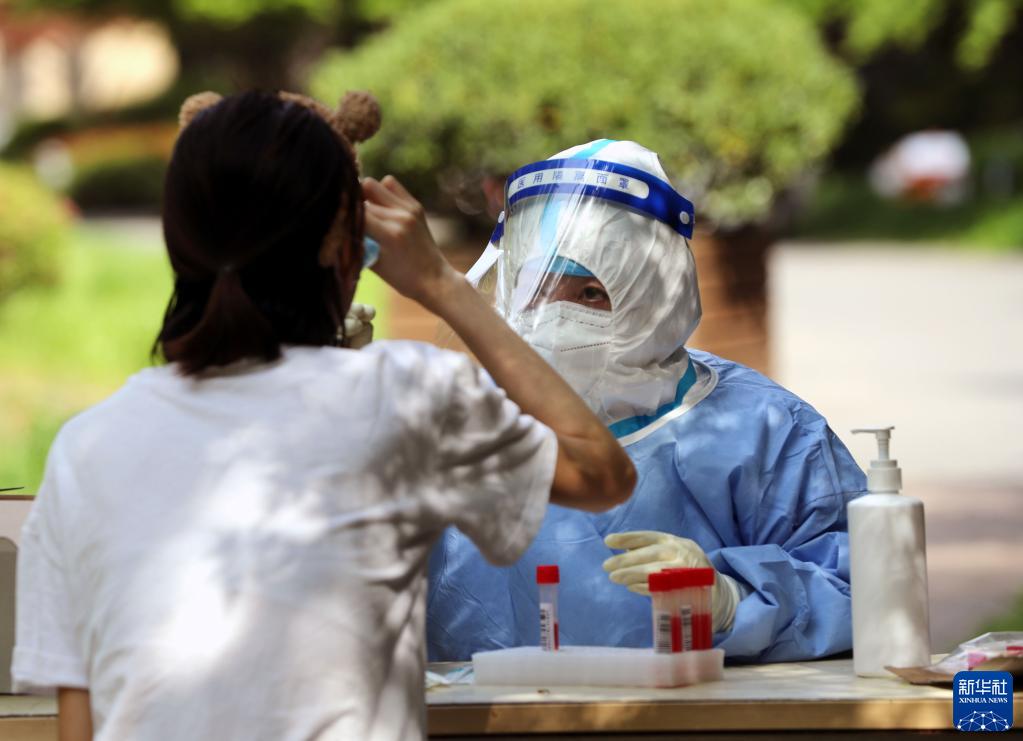 4月12日,在上海松江區(qū)一居民小區(qū)內(nèi),醫(yī)務人員進行核酸檢測采樣。新華社記者 劉穎 攝