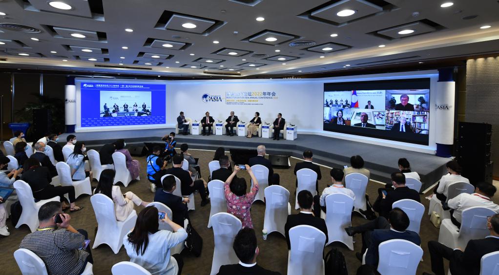 4月21日,博鰲亞洲論壇2022年年會舉行“一帶一路:合作發(fā)展的新實踐”分論壇。(新華社記者楊冠宇攝)