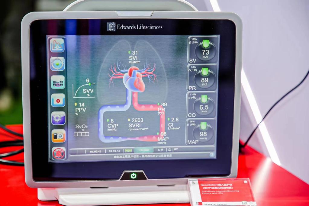 第四屆進(jìn)博會上的愛德華生命科學(xué)展臺里,全新一代HemoSphere病人監(jiān)護(hù)儀正在展示。(受訪對象提供)
