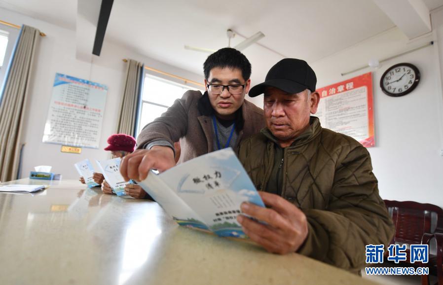 2020年12月17日,在廣西鹿寨縣鹿寨鎮(zhèn)波井村政務服務中心,紀檢監(jiān)察干部(前左)向村民介紹“微權力”清單。 新華社記者 黃孝邦 攝
