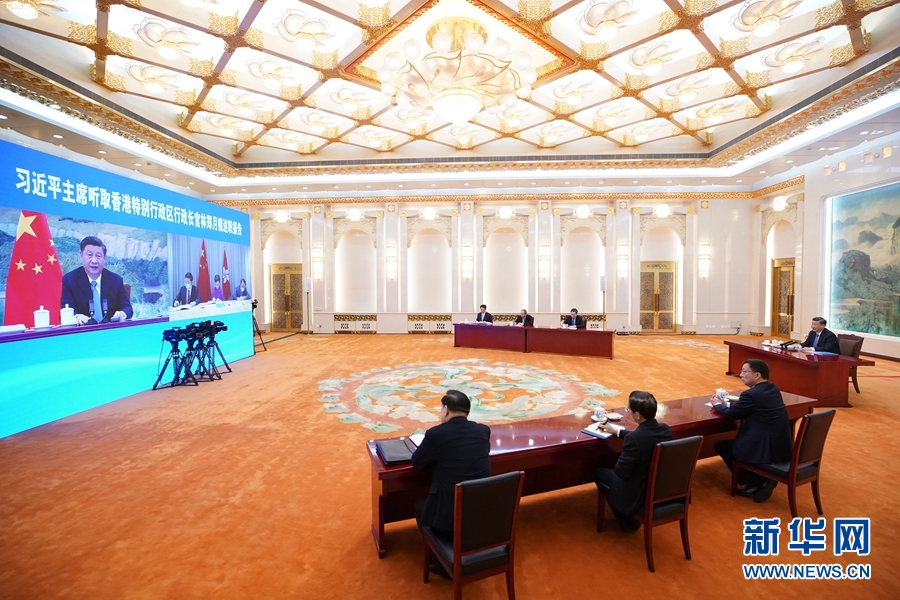 1月27日,國家主席習近平在北京以視頻連線方式聽取了香港特別行政區(qū)行政長官林鄭月娥2020年度的述職報告。新華社記者 鞠鵬 攝
