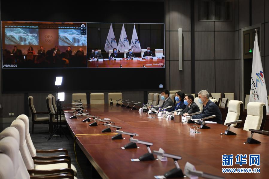 這是2020年2月24日,北京冬奧會(huì)和冬殘奧會(huì)2020年世界轉(zhuǎn)播商大會(huì)北京分會(huì)場(chǎng)通過(guò)視頻連線(xiàn)方式參會(huì)。新華社記者 鞠煥宗 攝