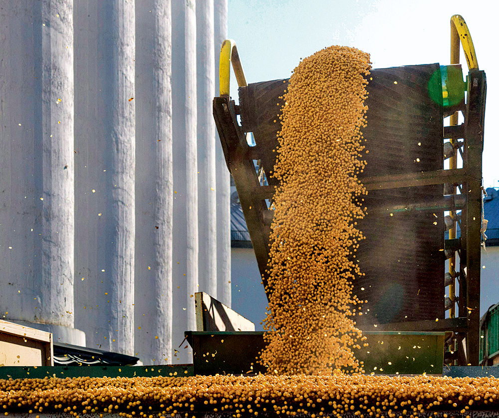 ▲ 中儲(chǔ)糧哈爾濱直屬庫,新收購的大豆正在入庫(2019年11月8日攝) 謝劍飛攝