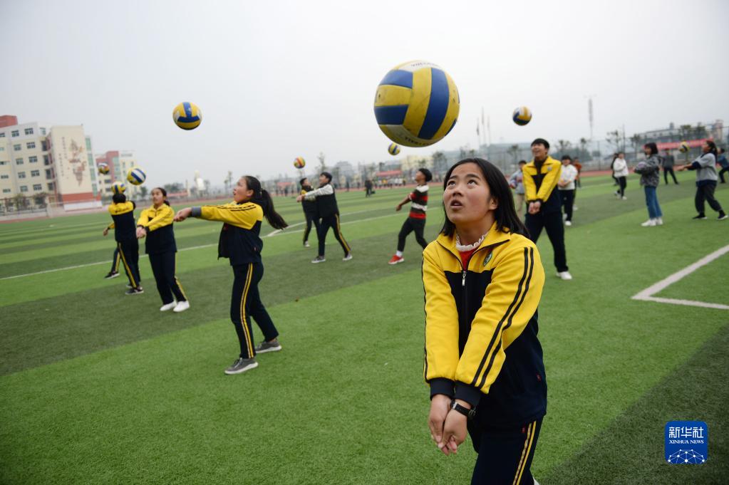 貴州省黔東南苗族侗族自治州榕江縣第四中學(xué)學(xué)生在上體育課(2018年12月13日攝)。新華社記者 楊楹 攝