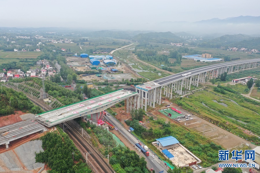 新華網(wǎng)鄭州9月22日電(范作言)9月20上午8:30,在河南南陽澠淅高速(澠池-淅川)跨寧西鐵路(南京-西安)轉(zhuǎn)體橋施工現(xiàn)場,隨著2臺牽引機的轟鳴啟動,重達21000噸的T構(gòu)梁緩慢順時針旋轉(zhuǎn),在歷時90分鐘旋轉(zhuǎn)67.5°后成功轉(zhuǎn)體,平穩(wěn)跨越了寧西鐵路和G312國道,在空中實現(xiàn)“華麗轉(zhuǎn)身”和精準對接。