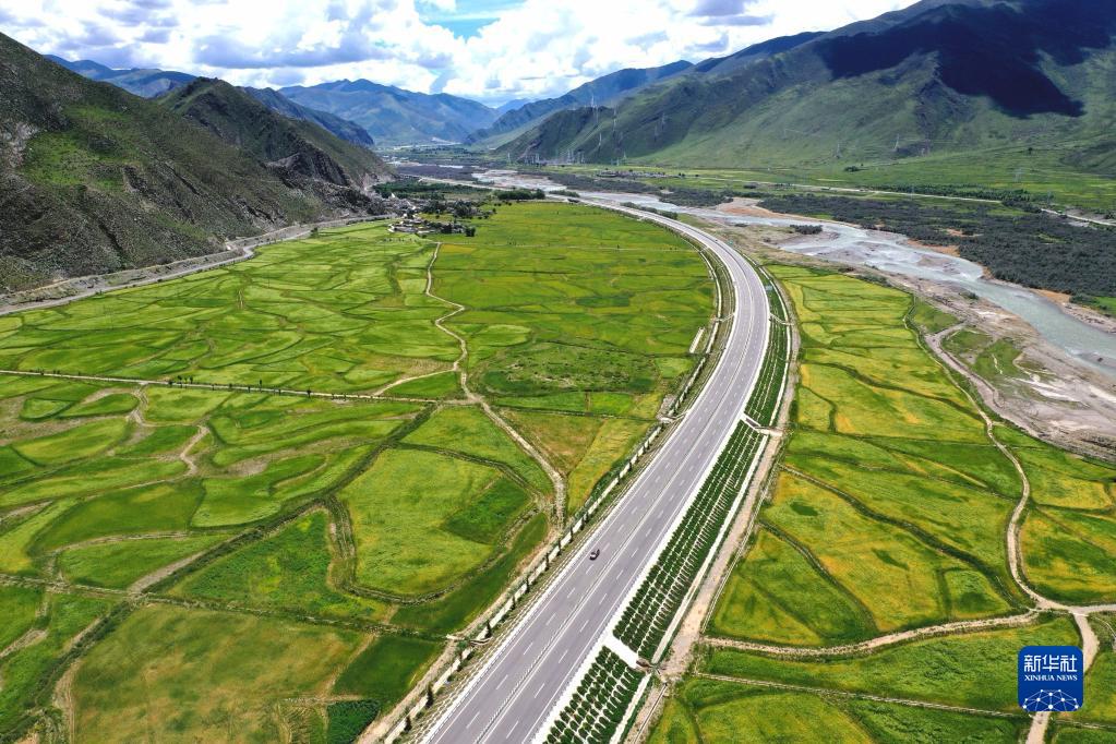 2019年8月16日拍攝的拉林公路一景(無人機(jī)照片)。新華社記者 普布扎西 攝