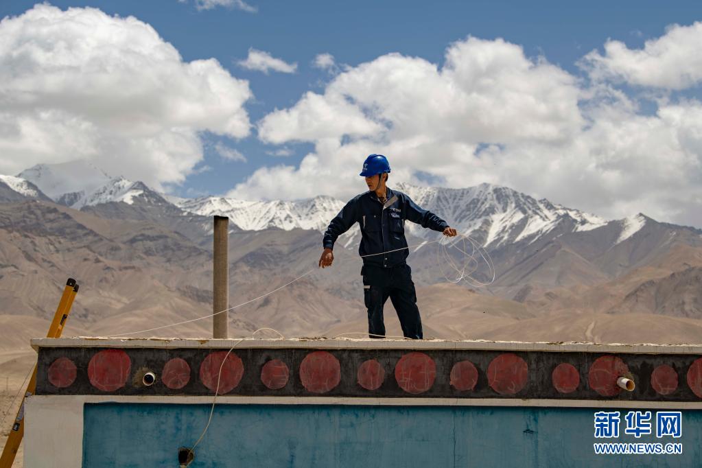 在新疆喀什地區(qū)塔什庫爾干塔吉克自治縣,工作人員為當(dāng)?shù)剞r(nóng)戶鋪設(shè)入戶光纖(2020610日攝)。新華社記者 胡虎虎 攝