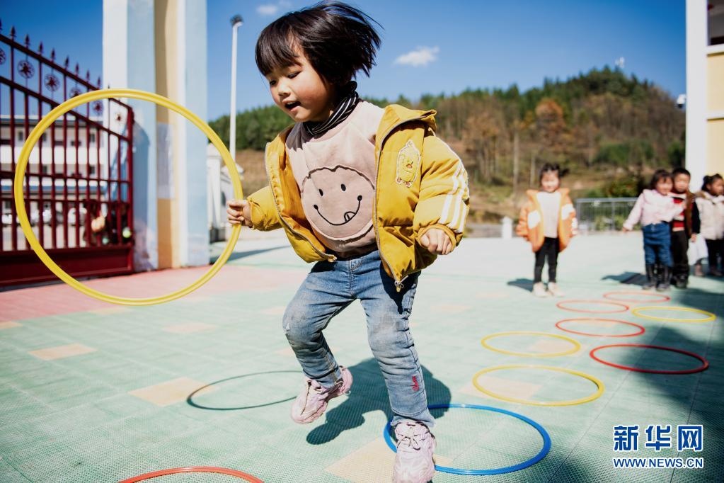 云南省鎮(zhèn)雄縣以古鎮(zhèn)巖洞腳村幼兒園的孩子在操場(chǎng)上玩耍(20201111日攝)。新華社記者 王冠森 攝