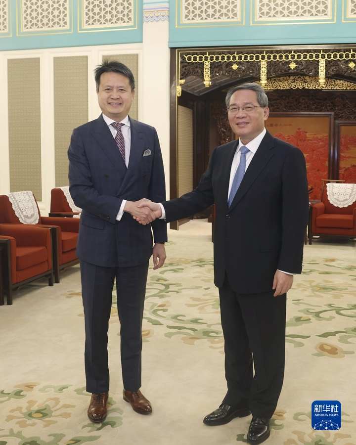 4月27日上午,國(guó)務(wù)院總理李強(qiáng)在北京中南海紫光閣會(huì)見(jiàn)世界知識(shí)產(chǎn)權(quán)組織總干事鄧?guó)櫳P氯A社記者劉衛(wèi)兵攝