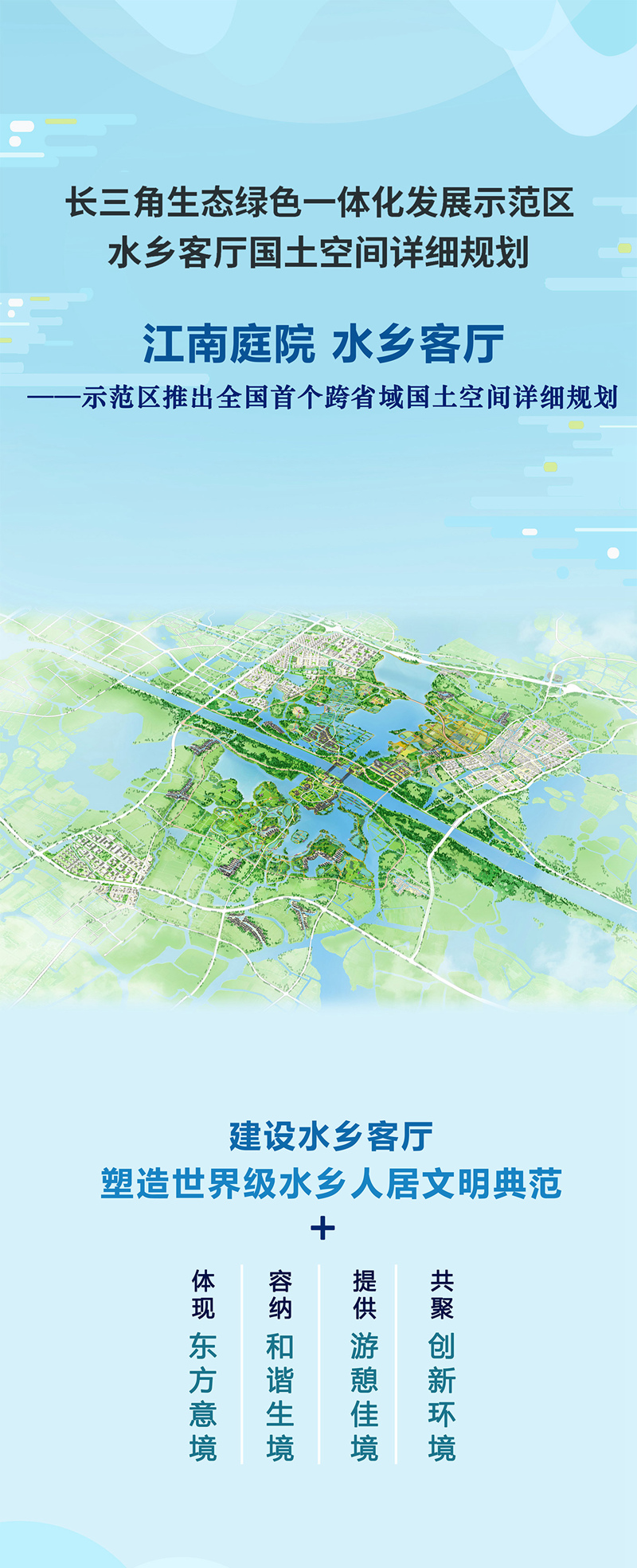 5月24日上午,在上海舉行了長三角一體化示范區(qū)水鄉(xiāng)客廳國土空間詳細(xì)規(guī)劃新聞發(fā)布會,會上發(fā)布了《長三角生態(tài)綠色一體化發(fā)展示范區(qū)水鄉(xiāng)客廳國土空間詳細(xì)規(guī)劃(2021-2035年)》,這也是全國首個(gè)跨省域的國土空間詳細(xì)規(guī)劃。水鄉(xiāng)客廳國土空間詳細(xì)規(guī)劃共13章、45節(jié),并包含了42張圖集以及詳細(xì)圖則,未來示范區(qū)將如何建設(shè)水鄉(xiāng)客廳?一圖詳解