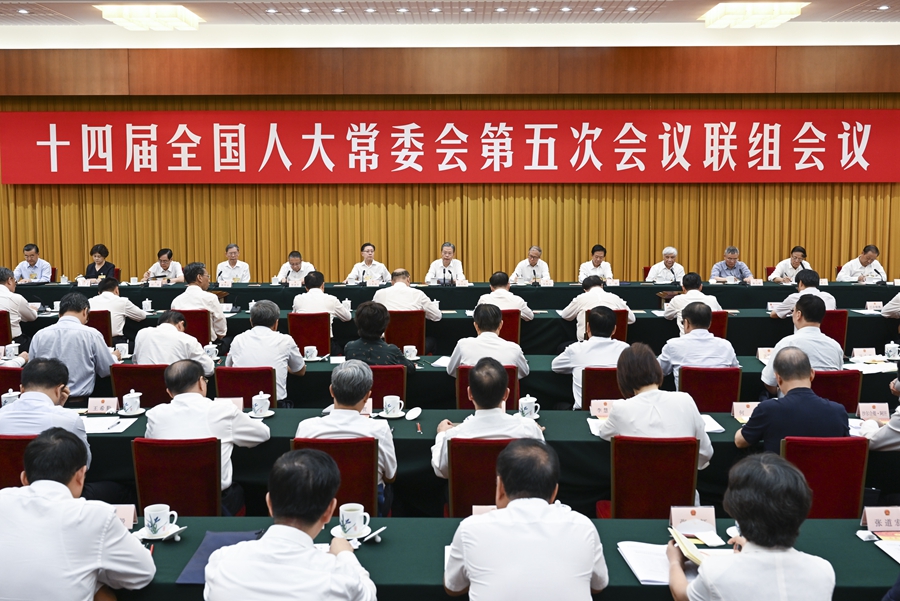 8月30日上午,十四屆全國(guó)人大常委會(huì)第五次會(huì)議在北京人民大會(huì)堂舉行聯(lián)組會(huì)議,審議國(guó)務(wù)院關(guān)于確保國(guó)家糧食安全工作情況的報(bào)告并開展專題詢問。趙樂際委員長(zhǎng)主持并講話。新華社記者 張領(lǐng) 攝