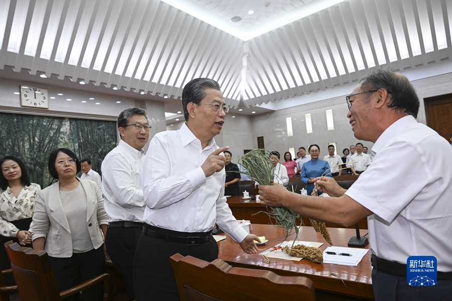 8月31日,中共中央政治局常委、全國人大常委會委員長趙樂際在北京同列席十四屆全國人大常委會第五次會議的全國人大代表,結合審議國務院關于確保糧食安全工作情況的報告,進行座談交流。新華社記者 張領 攝