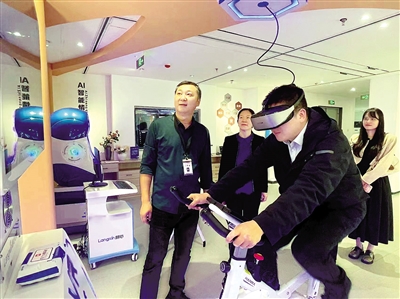 職工在市職工文體中心幸福體驗館體驗“移步換景”設備