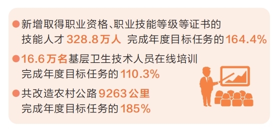 開展職業(yè)技能培訓(xùn)和評價取證。2023年,全省累計開展職業(yè)技能培訓(xùn)428.7萬人次,新增取得職業(yè)資格、職業(yè)技能等級等證書的技能人才328.8萬人,高技能人才124.8萬人,分別完成年度目標(biāo)任務(wù)的142.9%、164.4%、155.9%。