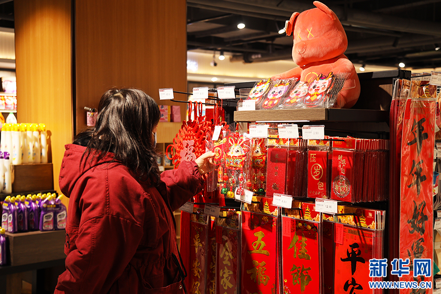 ??走進三門峽市澠池縣,大街小巷升騰的“年味”撲面而來,市民們紛紛開啟“買買買”模式,家家戶戶采辦年貨的熱情逐漸高漲,一派紅紅火火迎新春的熱鬧景象。在澠池大潤發(fā)超市內,新鮮的蔬菜、香甜的水果、糧油肉蛋奶琳瑯滿目,大紅的“?!弊?、各式的春聯、融入“龍”年元素的精美飾品目不暇接,新年的氛圍感瞬間拉滿。