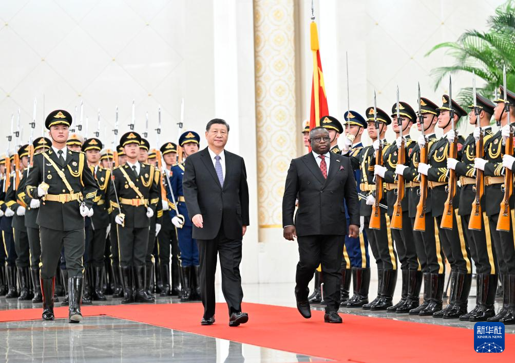 ??2月28日下午,國家主席習(xí)近平在北京人民大會堂同來華進行國事訪問的塞拉利昂總統(tǒng)比奧舉行會談。這是會談前,習(xí)近平在人民大會堂北大廳為比奧舉行歡迎儀式。 新華社記者 殷博古 攝