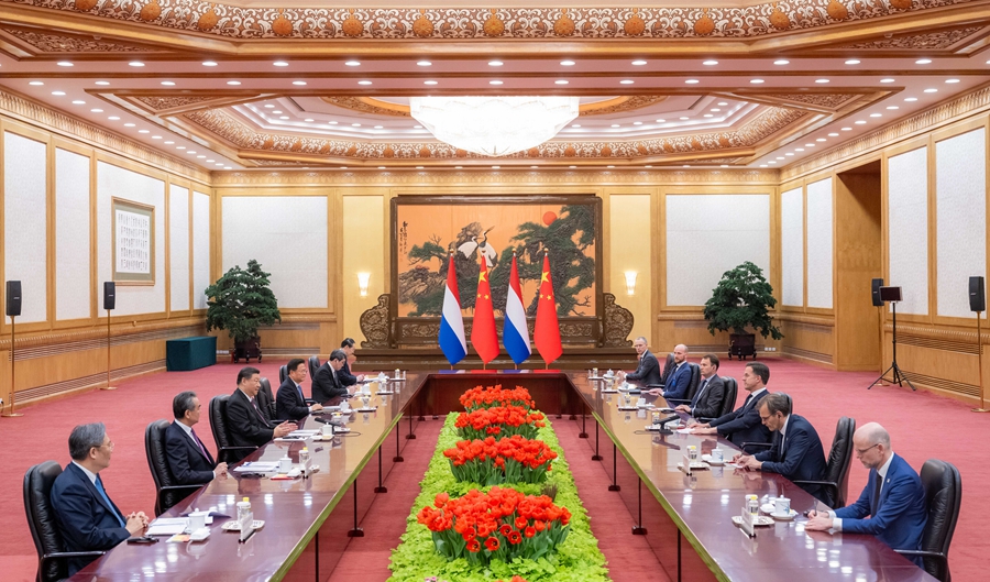 習(xí)近平指出,近年來(lái),中荷關(guān)系穩(wěn)健快速發(fā)展,兩國(guó)各領(lǐng)域合作持續(xù)深化,荷蘭已經(jīng)成為名副其實(shí)的中歐合作“門戶”。中方愿同荷方保持各層級(jí)交往,堅(jiān)持溝通對(duì)話,堅(jiān)持互利共贏,推動(dòng)中荷開(kāi)放務(wù)實(shí)的全面合作伙伴關(guān)系不斷發(fā)展。中方愿擴(kuò)大荷蘭優(yōu)質(zhì)商品進(jìn)口,歡迎荷蘭企業(yè)來(lái)華投資,也希望荷方為中國(guó)企業(yè)提供公正、透明的營(yíng)商環(huán)境。雙方要積極推進(jìn)農(nóng)業(yè)、水利、能源等傳統(tǒng)合作,同時(shí)挖掘人工智能、綠色轉(zhuǎn)型、銀發(fā)經(jīng)濟(jì)等領(lǐng)域合作潛力。希望雙方繼續(xù)采取更多便利人員往來(lái)措施,鼓勵(lì)教育、文化和民間交流。中方愿同荷方加強(qiáng)在聯(lián)合國(guó)、世界貿(mào)易組織等多邊機(jī)構(gòu)的溝通協(xié)調(diào),共同應(yīng)對(duì)氣候變化、生物多樣性等全球挑戰(zhàn)。