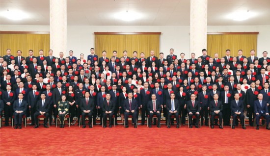 2020年9月8日,全國抗擊新冠肺炎疫情表彰大會在北京人民大會堂隆重舉行。會前,習(xí)近平等黨和國家領(lǐng)導(dǎo)人會見國家勛章和國家榮譽(yù)稱號獲得者,全國抗擊新冠肺炎疫情先進(jìn)個人、先進(jìn)集體代表等,并同大家合影留念。 新華社記者 黃敬文/攝